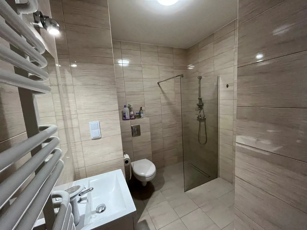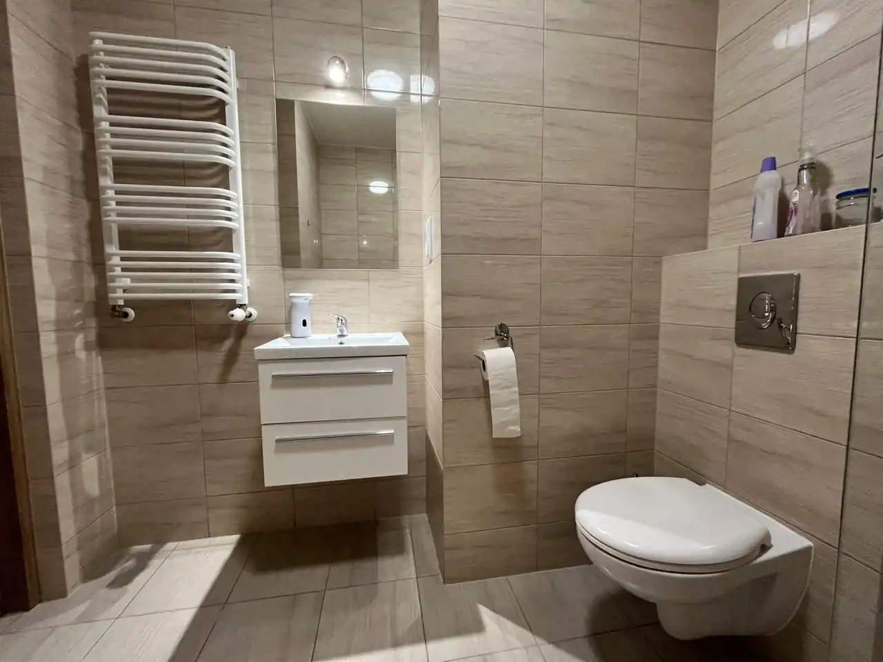łazienka (prysznic, umywalka, toaleta, miejsce na pralkę)