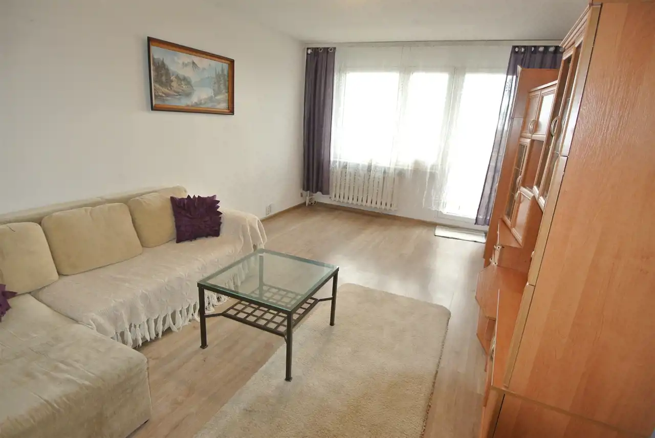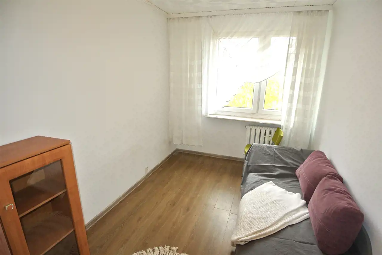 For sale: a three-room apartment with a total area of 64.85 m² (including basement), approximately 60 m² without the basement, located on the 4th floor of a four-story building in the Świętokrzyskie housing estate.