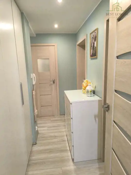 Mieszkanie jest w dobrym stanie, gotowe do zamieszkania, bez wkładu własnego. Wszystkie pokoje są ładnie urządzone i zaaranżowane w stonowanych kolorach. Łazienka jest komfortowa, a kuchnia połączona z jadalnią jest funkcjonalna, wyposażona w sprzęt AGD. W korytarzu zaaranżowano dodatkowy przedsionek ok. 3m2, w którym znajduje się pojemna szafa.