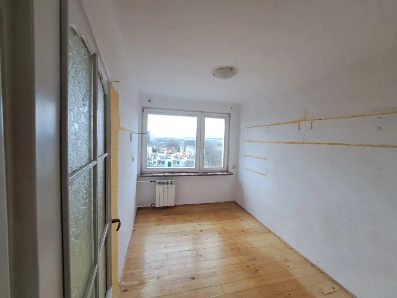 Mieszkanie 3 pokojowe do remontu o powierzchni 59,6 m2 zlokalizowane na 8 piętrze w 10 piętrowym bloku przy ulicy Nowowiejskiej 15 na os. Sady. Blok po termomodernizacji. W klatce zamontowana nowoczesna winda. Przed blokiem duży parking dla mieszkańców. Mieszkanie do indywidualnej aranżacji. Pierwotnie 4 pokojowe (możliwość przywrócenia układu z 4 pokojami). Budynek oddany do użytkowania w 1974 roku. Mieszkanie ciepłe i widne z balkonem (loggia). W pokojach wymienione kaloryfery. W salonie zamontowana klimatyzacja!