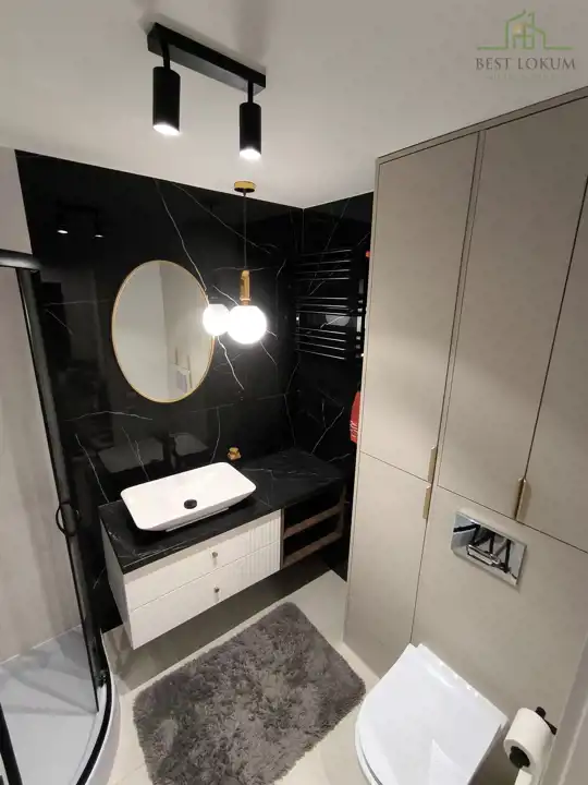 - Duża łazienka z pojemnymi szafkami w zabudowie (okucia Blum) - 4,14 m2