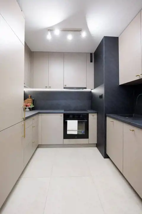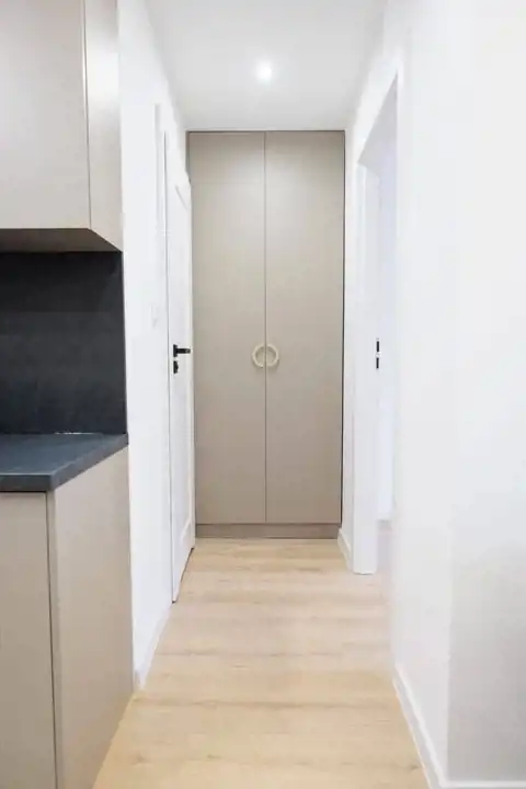 Aneks kuchenny został w pełni wyposażony w niezbędny sprzęt AGD (kuchenkę, okap, zmywarkę, indukcję), co pozwala na natychmiastowe użytkowanie mieszkania. Całość wykończona w wysokim standardzie, z dbałością o detale i estetykę. W standardzie nowe meble oraz szafy na wymiar.