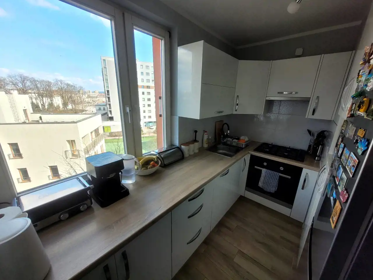Widna oddzielna kuchnia został w pełni wyposażony w niezbędny sprzęt AGD (kuchenkę, okap, zmywarkę, indukcję, lodówka), co pozwala na natychmiastowe użytkowanie mieszkania. Całość wykończona w wysokim standardzie, z dbałością o detale i estetykę. W standardzie meble oraz szafy na wymiar.