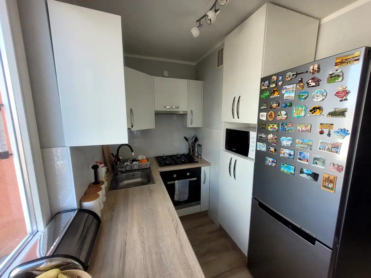 Mieszkanie jest ciepłe i słoneczne, co zapewnia komfort i przyjemną atmosferę przez cały dzień.