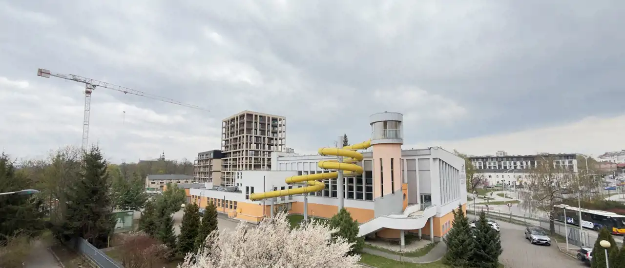 - Media Ogrzewanie: C.O. miejskie; Woda: ciepła - terma; Gaz: brak
