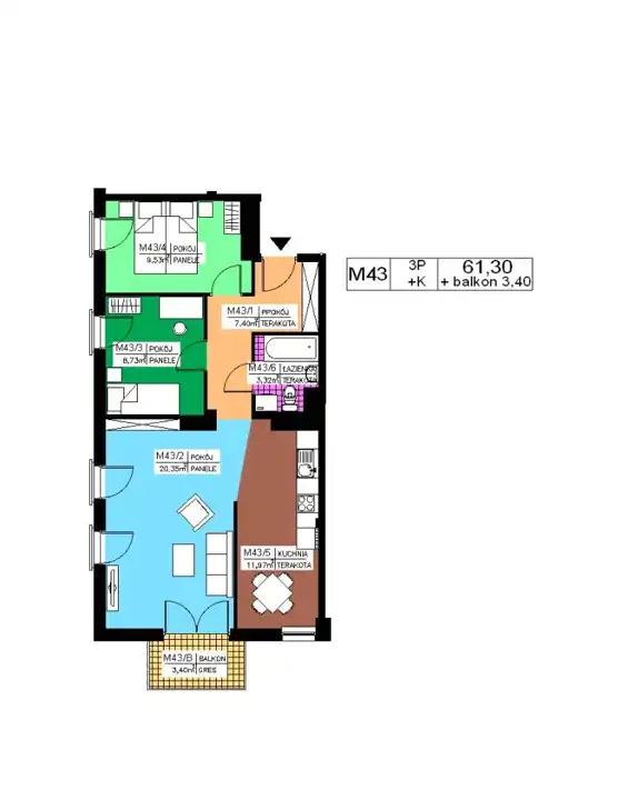 - Charakterystyka mieszkania 61.3 m2, 3 pokoje