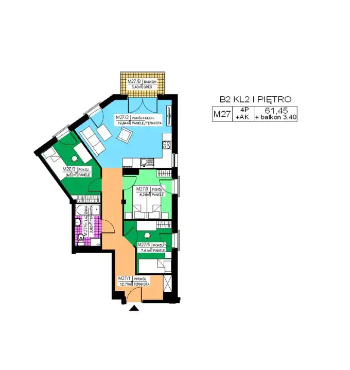 - Charakterystyka mieszkania 61.45 m2, 4 pokoje
