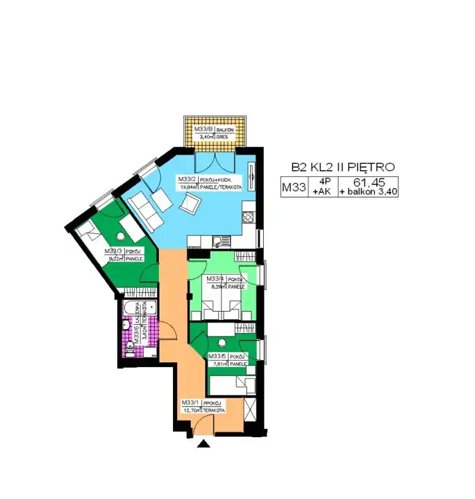 - Charakterystyka mieszkania 61.45 m2, 4 pokoje