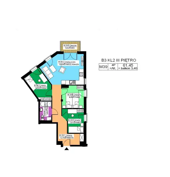 - Charakterystyka mieszkania 61.45 m2, 4 pokoje