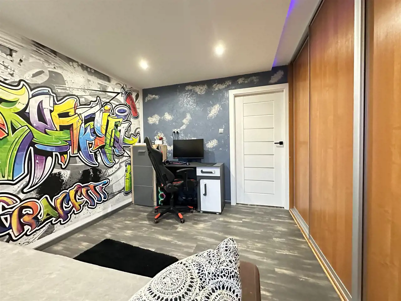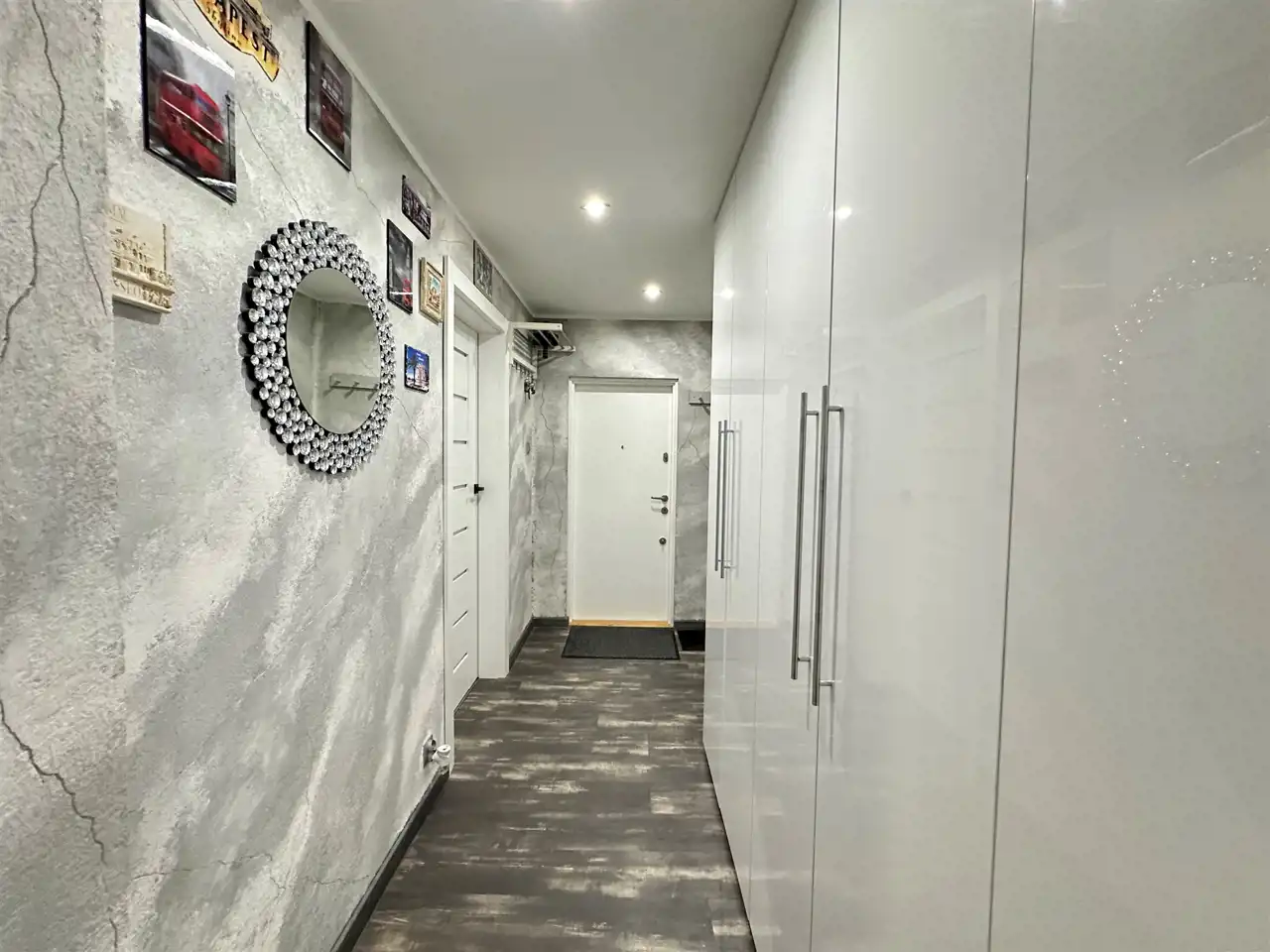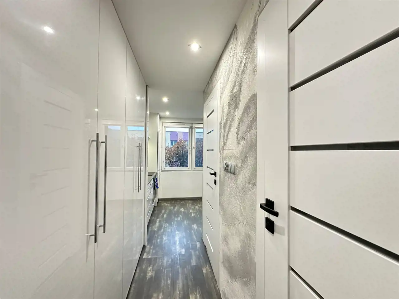 - duży korytarz z szafą z którego mamy oddzielne wejścia do wszystkich pomieszczeń.
