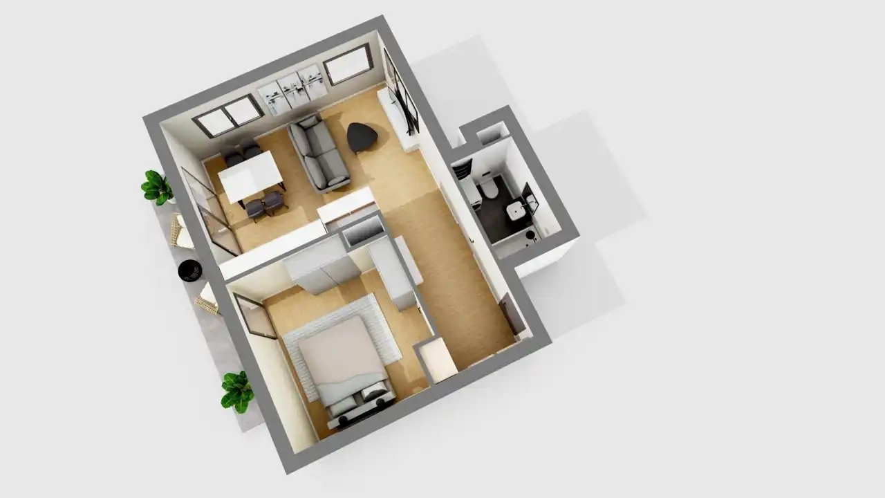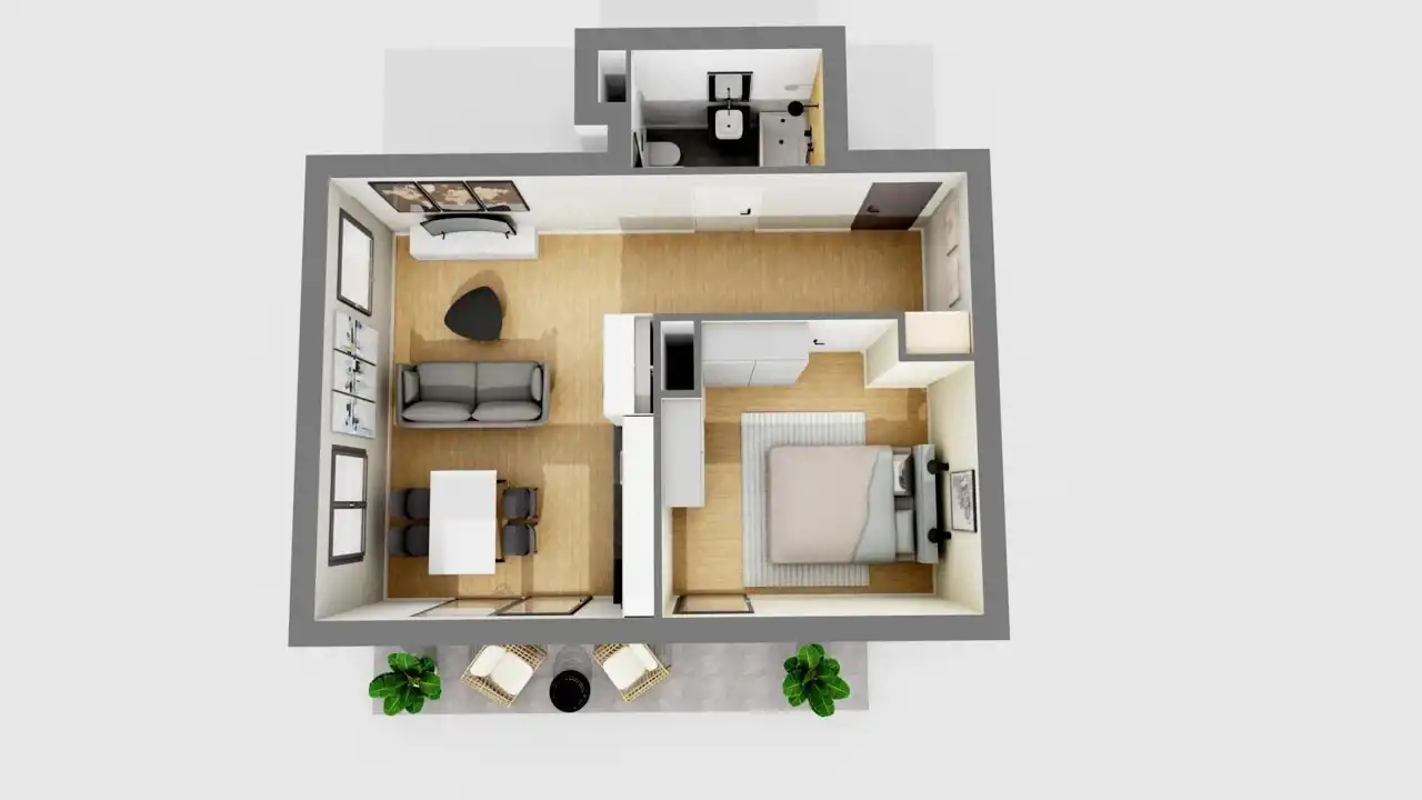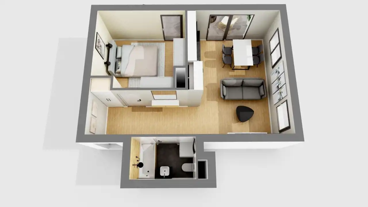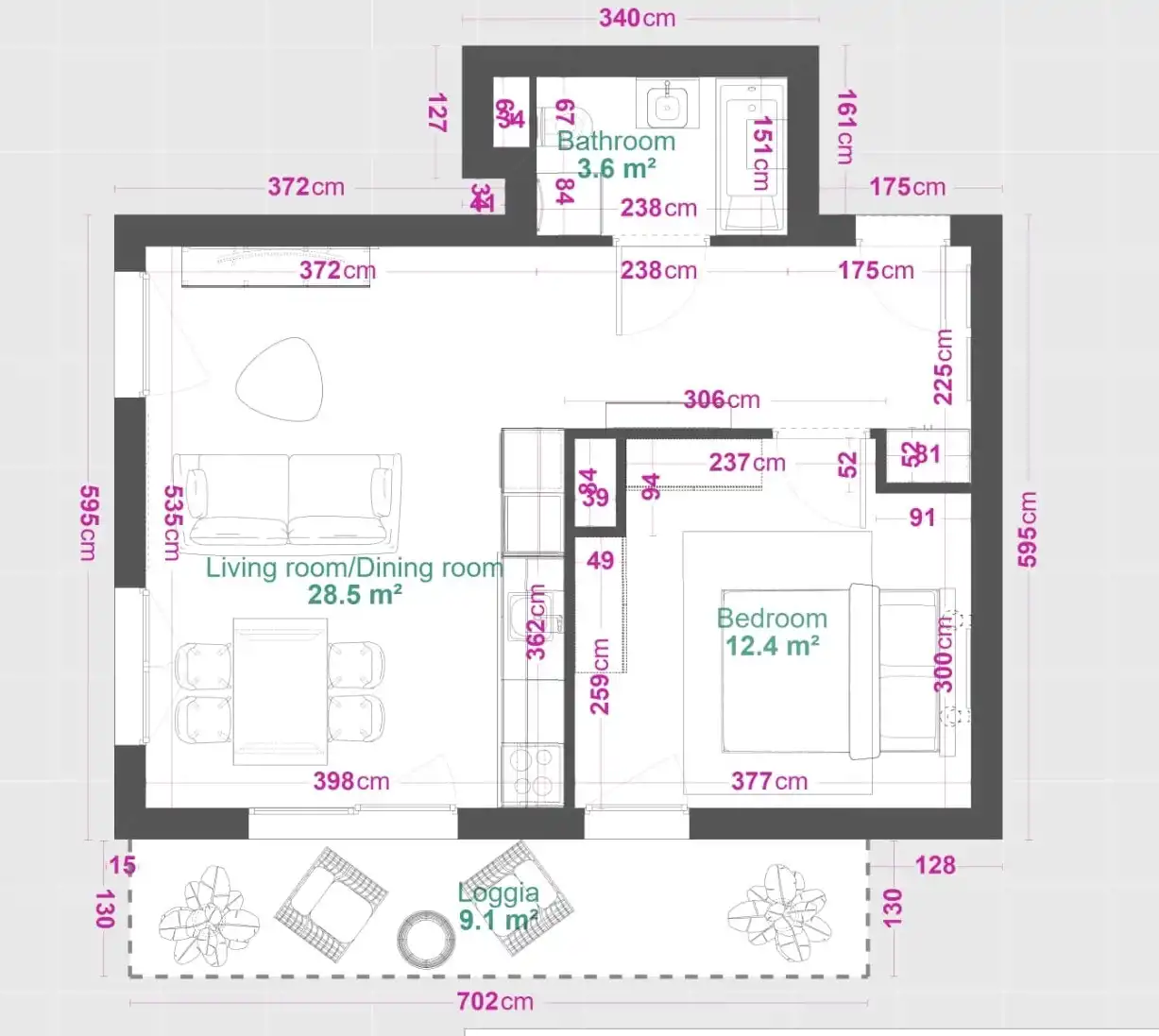 - Charakterystyka mieszkania 41.3 m2, 2 pokoje