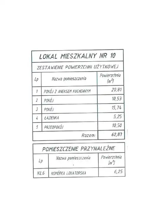 - Charakterystyka mieszkania 62.83 m2, 3 pokoje