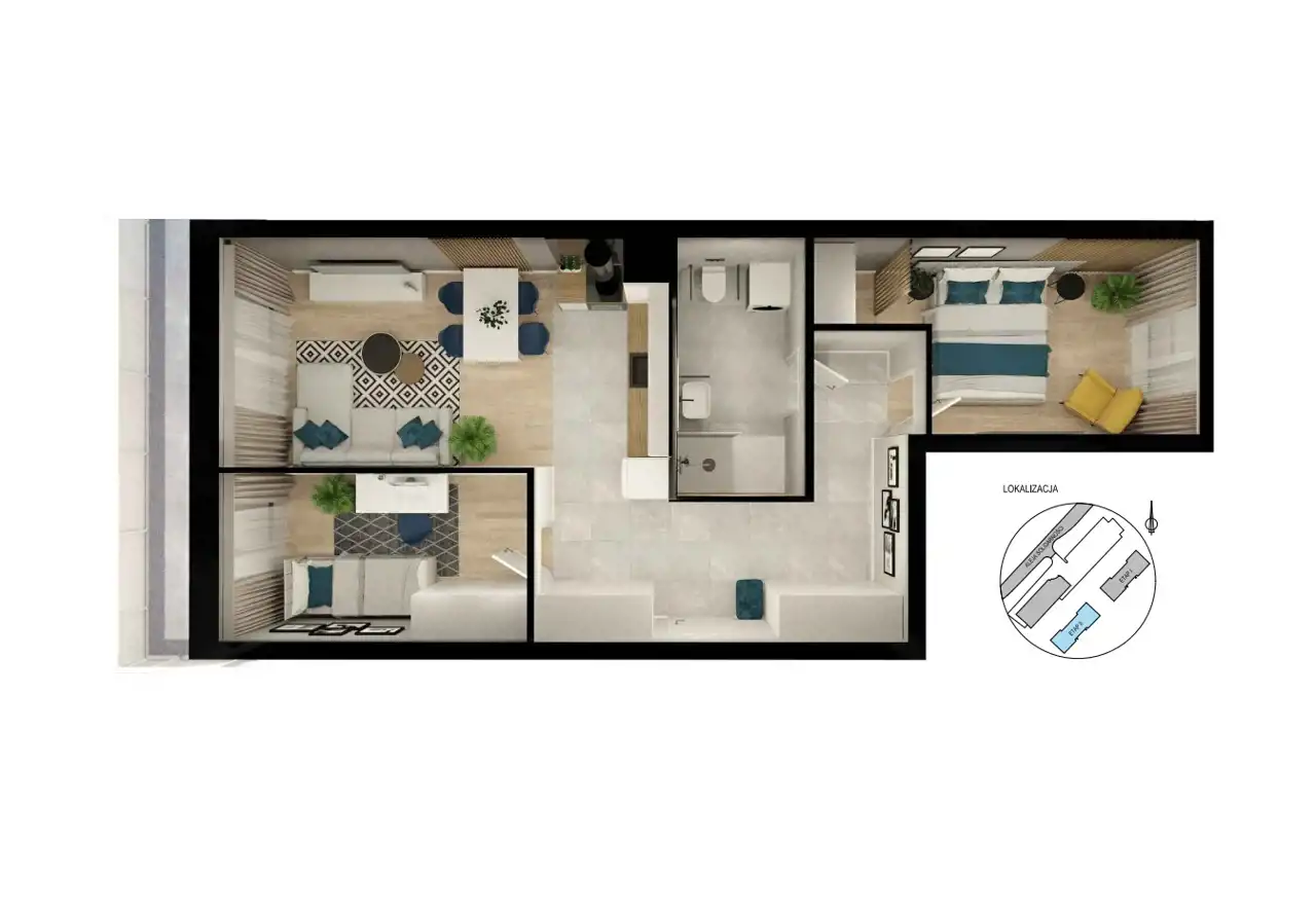 - Charakterystyka mieszkania 56.14 m2, 3 pokoje