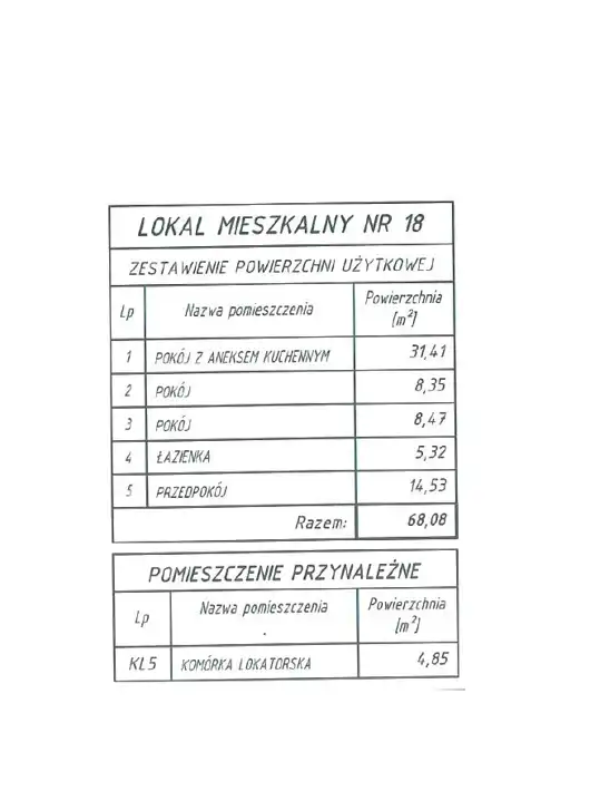 - Charakterystyka mieszkania 68.08 m2, 3 pokoje