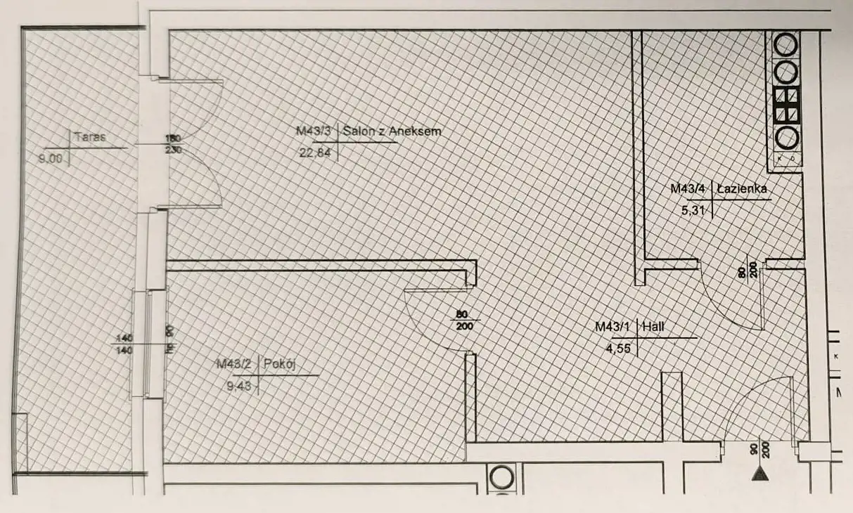 - Charakterystyka mieszkania 42.13 m2, 2 pokoje