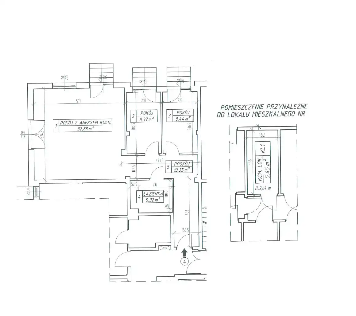 Do mieszkania przynależy komórka lokatorska o pow. 5,45 m2.