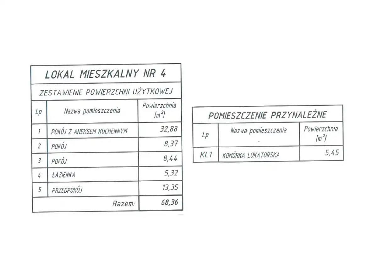 - Charakterystyka mieszkania 68.36 m2, 3 pokoje