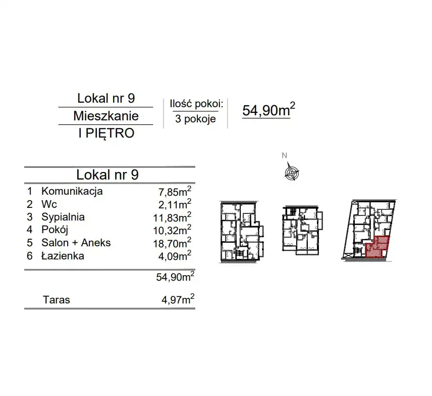 - Charakterystyka mieszkania 54.9 m2, 3 pokoje