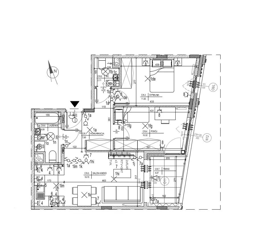 Do lokalu przynależy taras o pow. 4,97 m2.