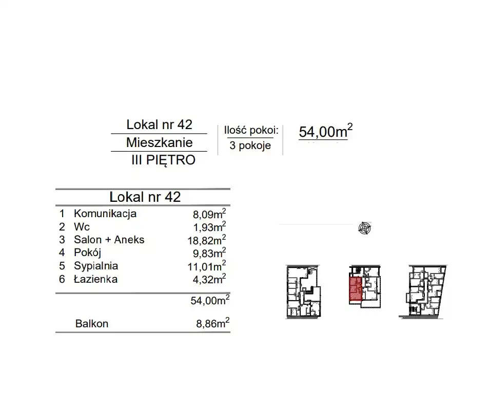 - Charakterystyka mieszkania 54 m2, 3 pokoje