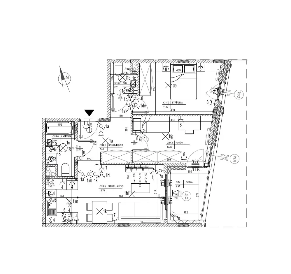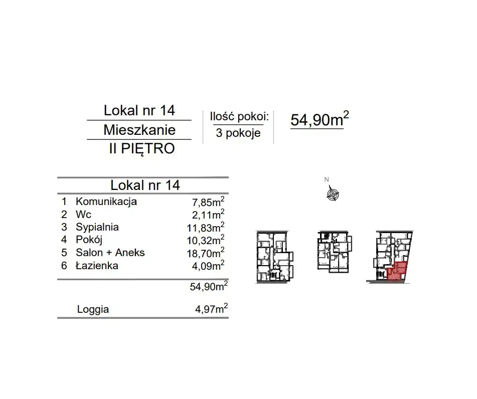 - Charakterystyka mieszkania 54.9 m2, 3 pokoje