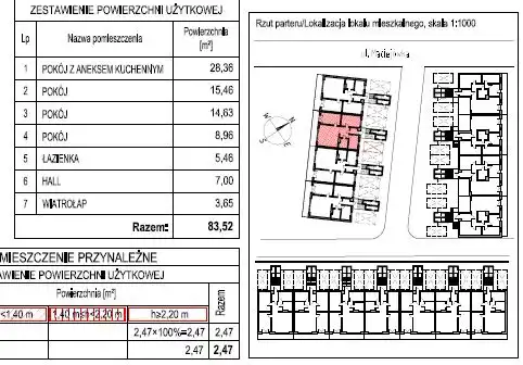 - Charakterystyka mieszkania 83.52 m2, 4 pokoje