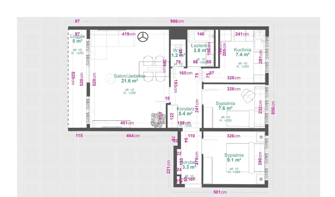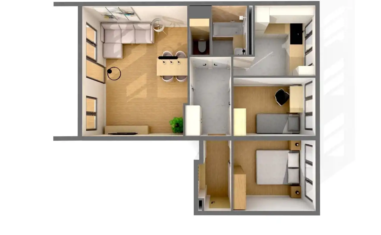 - Charakterystyka mieszkania 58.59 m2, 3 pokoje