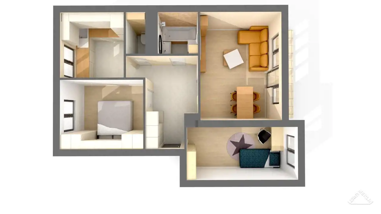 - Charakterystyka mieszkania 58.35 m2, 3 pokoje