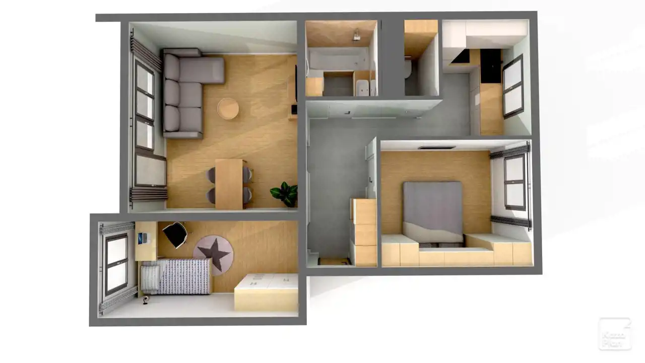 - 2 ustawne pokoje / sypialnie – 10.6 m2 , 10.7 m2