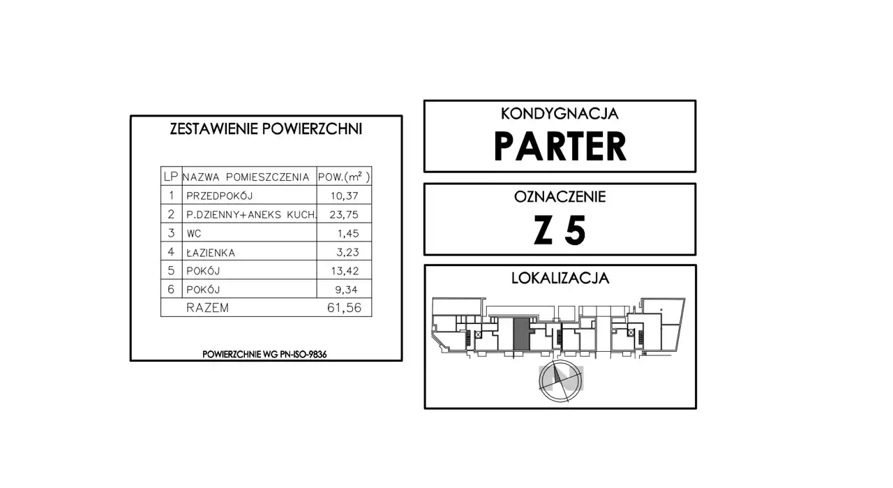 - Charakterystyka mieszkania 61.56 m2, 3 pokoje