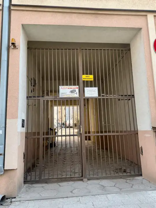 Prywatny wjazd na wewnętrzny dziedziniec - zabezpieczony metalową bramą na pilota jest niewątpliwem plusem w kwestii dostępnych miejsc parkingowych tylko dla właścicieli kamienicy biorąc pod uwagę strefę płatnego parkowania w centrum ! W tym przypadku ten problem nas nie dotyczy - mamy swoje prywatne miejsca dla aut wewnątrz posesji !