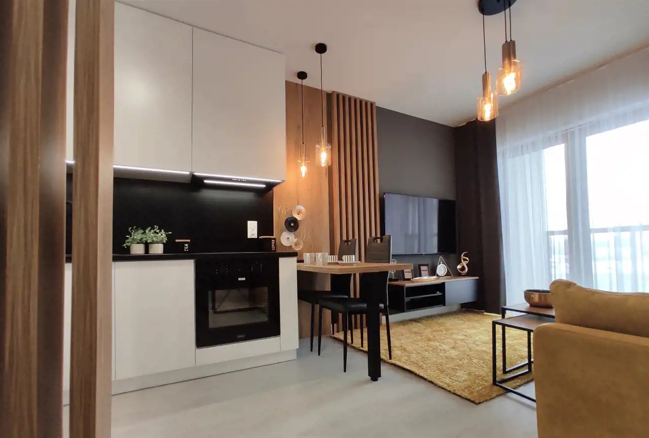 OFERTA BEZ PROWIZJI OD KUPUJĄCEGO!!! Posiadamy w ofercie do sprzedaży słoneczne, środkowe mieszkanie o powierzchni użytkowej 47,49 m2 (całkowita powierzchnia w księdze wieczystej 51,90 m2), usytuowane na czwartym piętrze w nowym budynku z windą, zlokalizowanym w samym Centrum miasta przy ul. al. IX Wieków Kielc 4A. W skład mieszkania wchodzi salon z aneksem kuchennym, dwie sypialnie, łazienka z WC oraz przedpokój. Dodatkową powierzchnię stanowi duży balkon, na który można wyjść z każdego pomieszczenia. Mieszkanie wykończone w nowoczesnym stylu przez architekta Na ścianach gładzie, na podłodze w pokojach panele AC5 8 mm; w łazience terakota. Na wyposażeniu łazienki podwieszane WC, kabina prysznicowa, umywalka, szafka w zabudowie oraz pralka. W całym mieszkaniu zainstalowane oświetlenie ledowe. Okna PCV, trzyszybowe, sześciokomorowe - ekspozycja zachodnia. Ponadto w mieszkaniu zamontowana klimatyzacja "FUJITSU", która nie tylko świetnie sprawdzi się w upalne dni ale posiada też funkcję dogrzewania. W mieszkaniu pozostają wszystkie meble widoczne na zdjęciach oraz dobrej jakości sprzęt AGD (lodówka, kuchenka indukcyjna, piekarnik elektryczny, zmywarka "KERNAU", okap i zlewozmywak). W przedpokoju szafy w zabudowie. Drzwi wejściowe antywłamaniowe. Do mieszkania przynależy komórka lokatorska o powierzchni 4,41 m2, płatna dodatkowo 28000,00 zł. Istnieje możliwość zakupu miejsca postojowego w hali garażowej za dodatkową opłatą. Mieszkanie bardzo ciepłe i oszczędne w eksploatacji. Czynsz do wspólnoty wynosi jedynie 312,00 zł. Dodatkowo płatne jest tylko zużycie energii elektrycznej. Budynek oddany do użytku w 2021 roku. Wejście do klatek monitorowane, dodatkowo zabezpieczone domofonem. W pobliżu pełna infrastruktura miasta. ZAPRASZAM DO ZAPOZNANIA SIĘ Z OFERTĄ! Klienci zgłaszający się do Biura Nieruchomości HOME PERFECT NIE PŁACĄ PROWIZJI!!! Jednocześnie zapewniamy Państwu pełną opiekę podczas całego procesu kupna, aż po podpisanie umowy, profesjonalne doradztwo, a także pomoc w uzyskaniu kredytu. Posiadamy również obowiązkowe ubezpieczenie OC Pośrednika w obrocie nieruchomościami w PZU.
