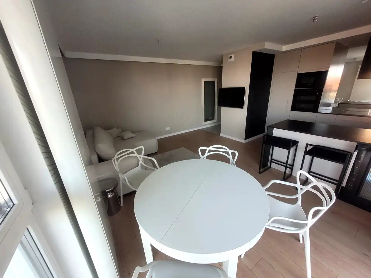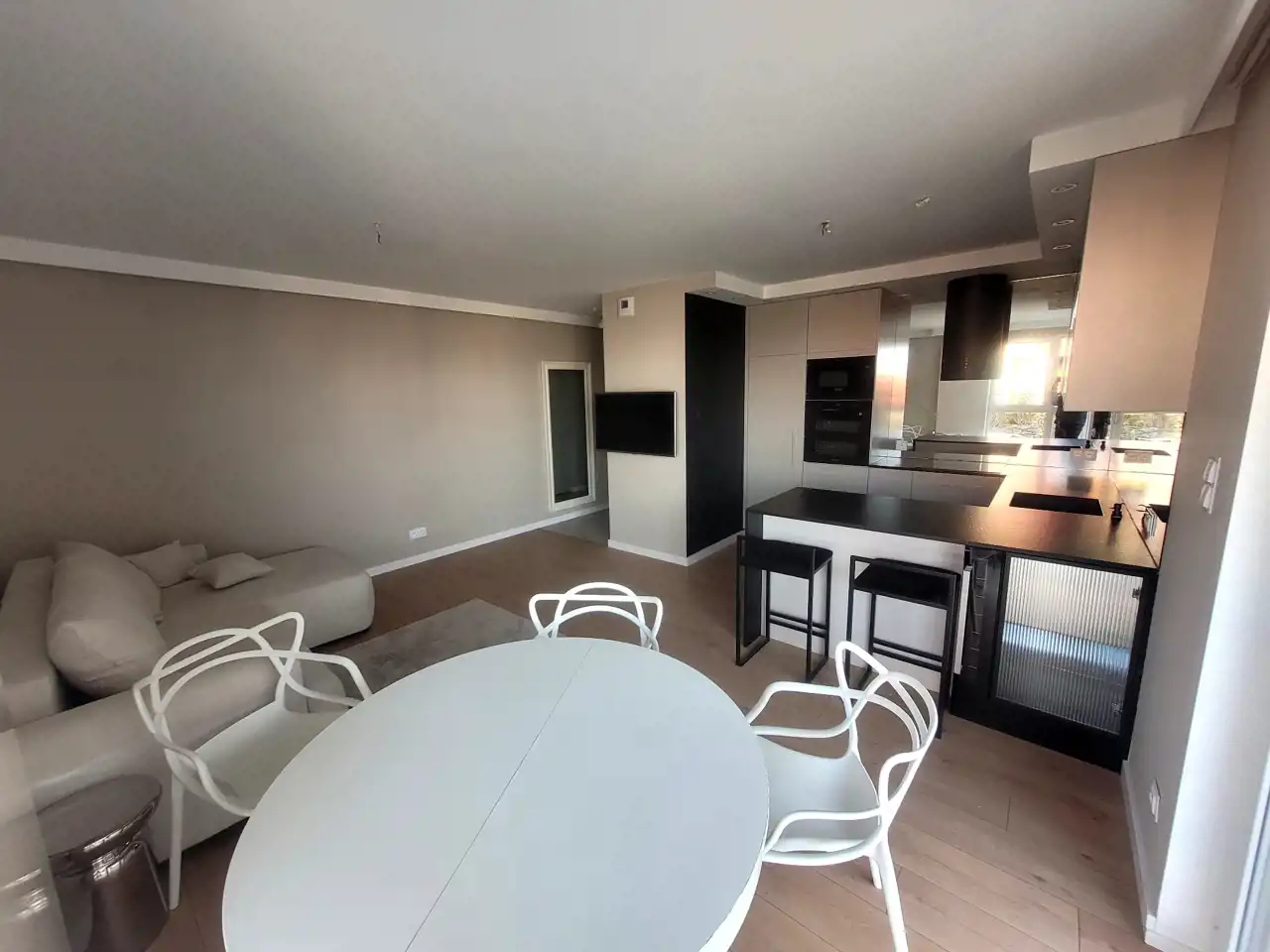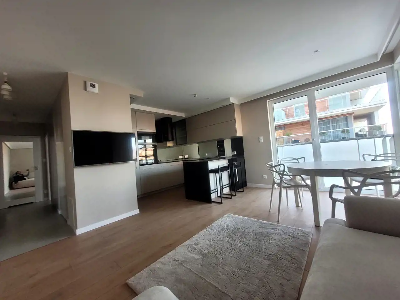 salon z aneksem kuchennym i wyjściem na taras