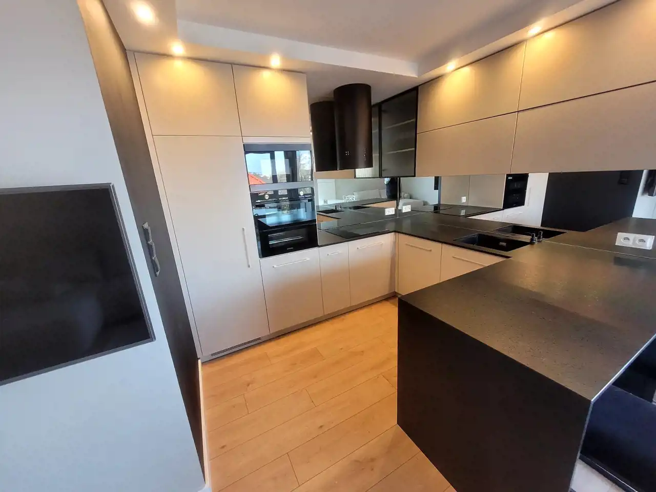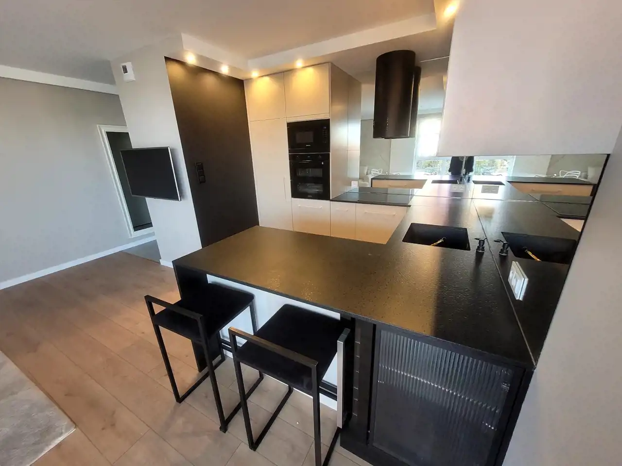 Kuchnia wykonana w zabudowie i wyposażona w sprzęty AGD, w tym: