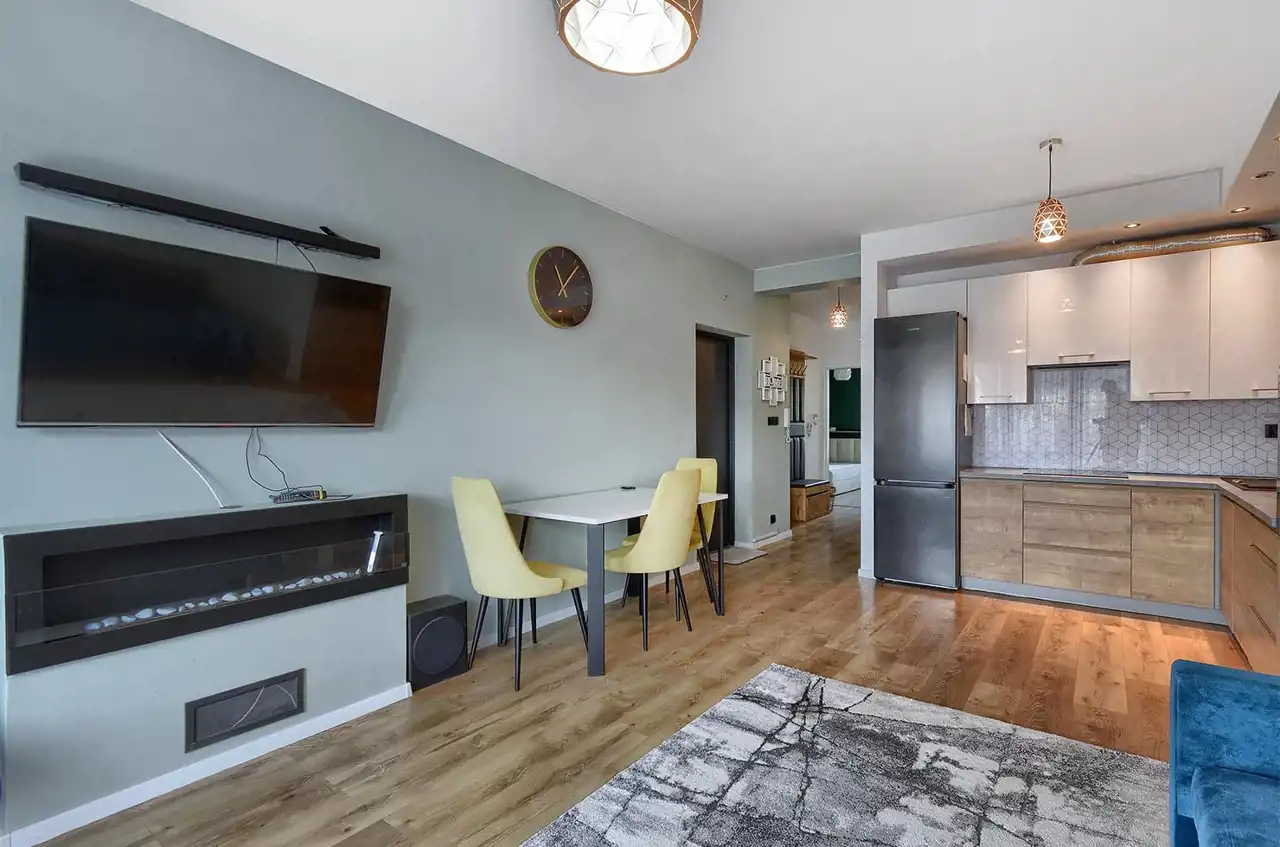 For sale: modern 3-room apartment with a large garden, located on the ground floor of a terraced house from 2021, situated in the Zagórze district of Kielce. The apartment has an area of 61.3 m², finished in a modern style, with a built-in kitchen fully equipped with household appliances (induction hob, dishwasher, oven, fridge-freezer, TV, washing machine) — ready to move in. Hot water and heating are provided by a dual-function gas boiler.