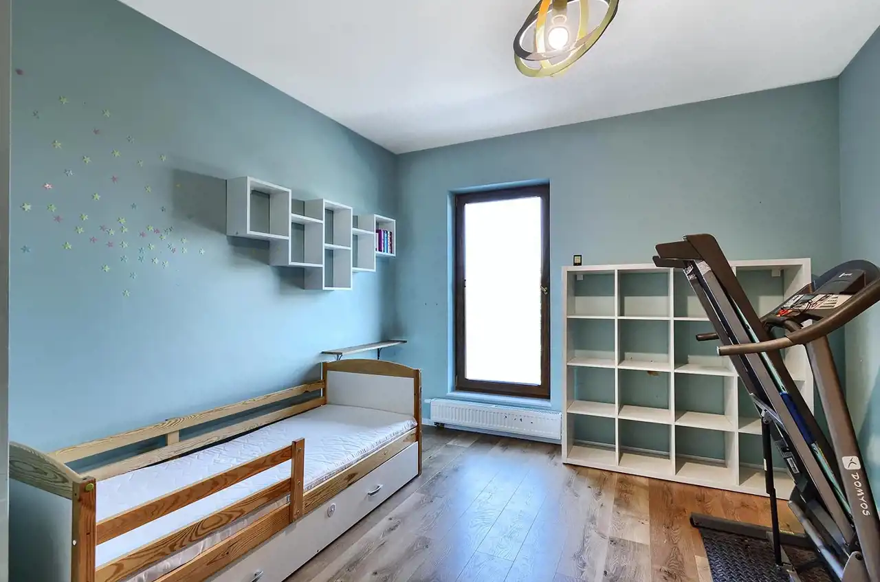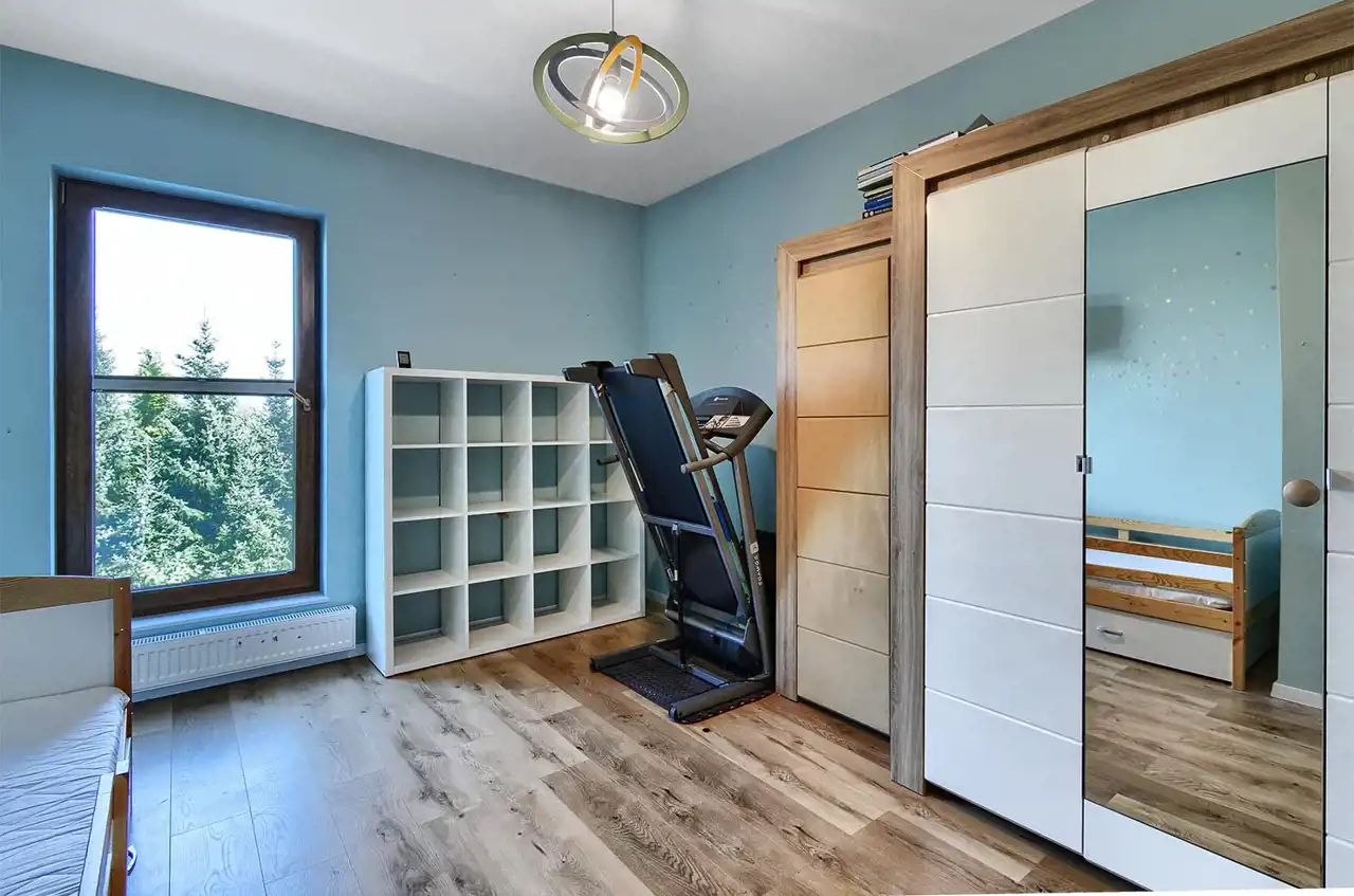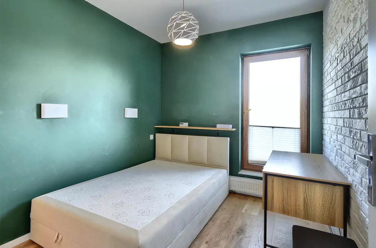 The apartment comes with a storage unit of 2.3 m² and a parking space in the building’s garage, available for an additional 30,000 PLN.