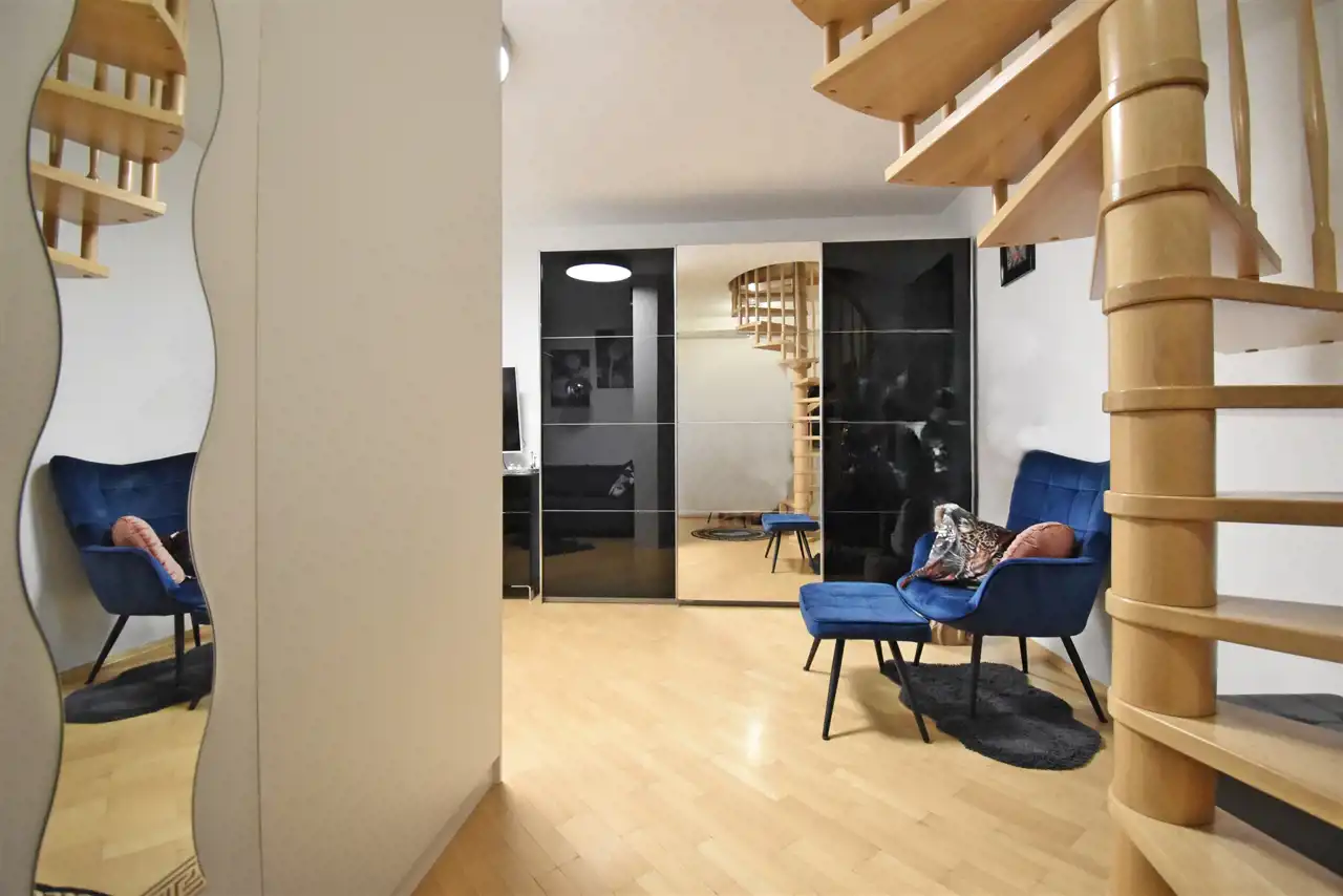 For sale: A 3-room, two-level apartment with a usable area of 57.6 m² and a total area of approximately 74 m², located in the Ślichowice estate on Tektoniczna Street. The building, constructed in 2007, was built using traditional masonry technology.