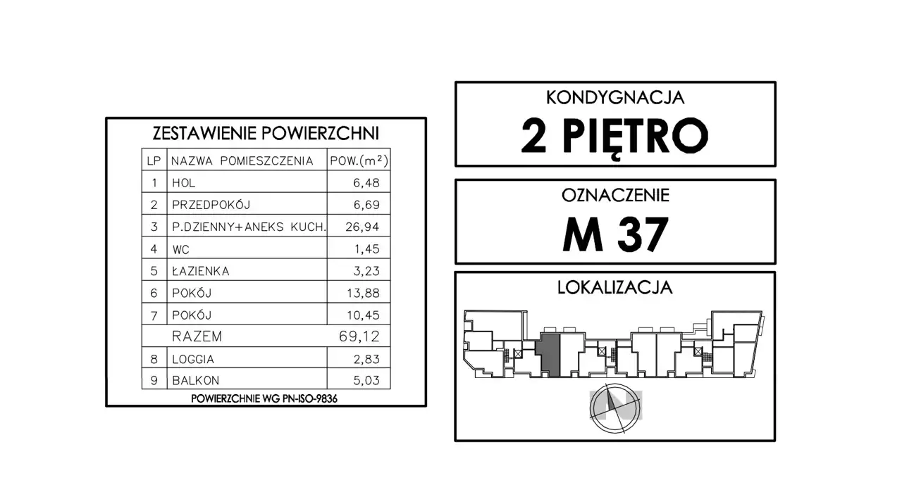 - Charakterystyka mieszkania 69.12 m2, 3 pokoje