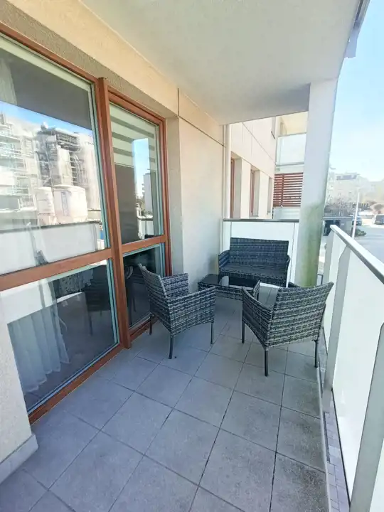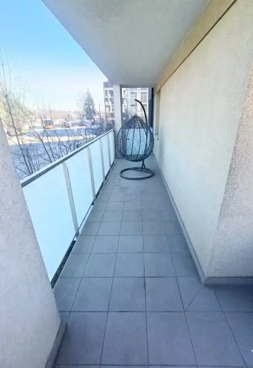 -duży balkon o powierzchni 17 m2 w kształcie litery L,