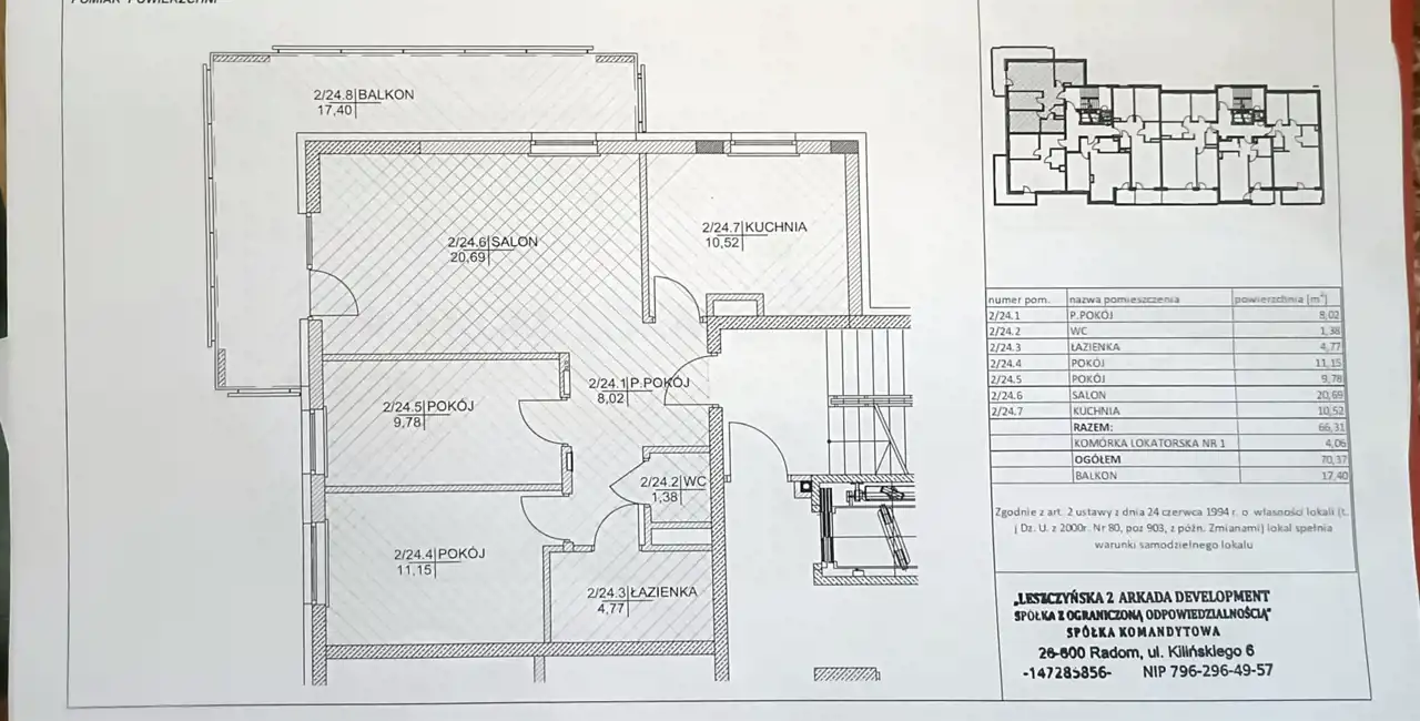 - Charakterystyka mieszkania 66.11 m2, 3 pokoje