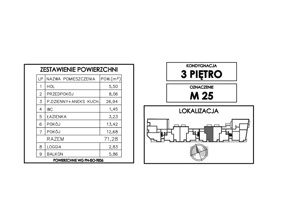 - Charakterystyka mieszkania 71.28 m2, 3 pokoje