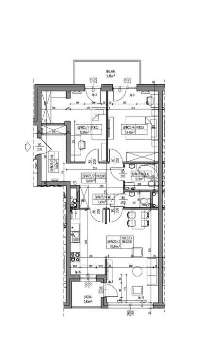 Do lokalu przynależy loggia o pow. 2,83 m2 oraz balkon o pow. 5,86 m2.