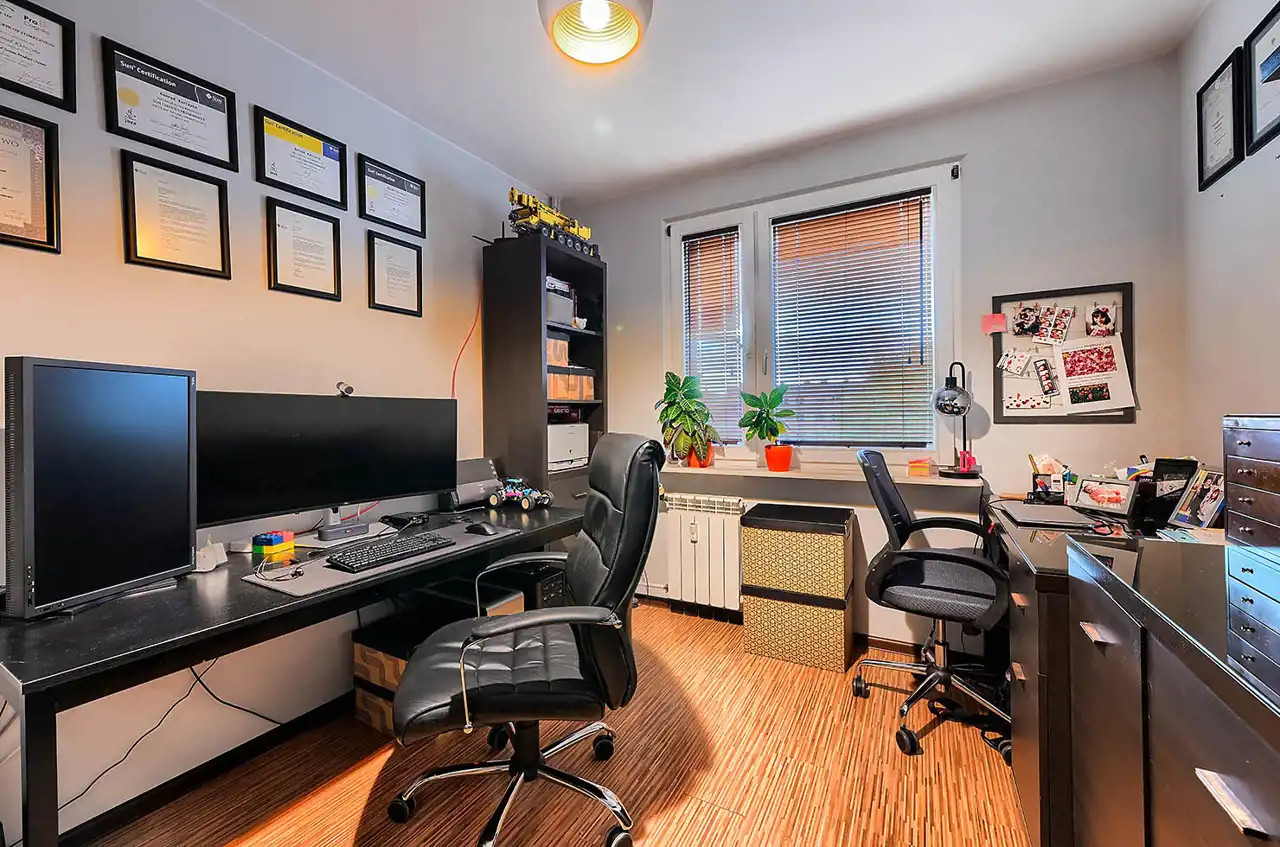 Maintenance costs: administrative fee to the housing cooperative approx. PLN 1,350 (for 3 people), including advance payments for water, heating, waste disposal, and the renovation fund. Electricity and gas are paid additionally according to meter readings.