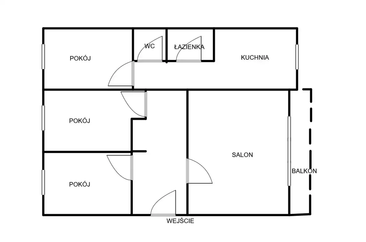 W skład mieszkania wchodzą: cztery pokoje (o pow. około 18,4; 9,4; 9,6 i 9,7 m2), oddzielna, widna kuchnia o pow. ok. 9,6 m2, łazienka (pow. ok. 3,00 m2) oddzielne WC o pow. około 1,5m2 oraz przedpokój. Mieszkanie rozkładowe, dwustronne, widne (ekspozycja wschód-zachód), w kuchni zabudowa na wymiar. W pokojach na podłodze panele. W kuchni, przedpokoju i łazience gres. Ogrzewanie i ciepła woda z sieci miejskiej. Mieszkanie z dużym wyremontowanym balkonem z nowymi płytkami. Właściciel korzysta z piwnicy.
