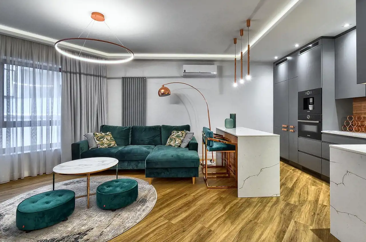 Mieszkanie nigdy nie zamieszkiwane, nowocześnie urządzone, wykończone w wysokim standardzie. Mieszkanie kompletnie wyposażone w sprzęt AGD firmy Bosch - piekarnik, kuchenka, pralka, suszarka. W przedpokoju szafy w zabudowie oraz oddzielna garderoba. W mieszkaniu zainstalowana jest klimatyzacja. Ogrzewanie i ciepła woda z sieci miejskiej. W łazience ogrzewanie podłogowe.