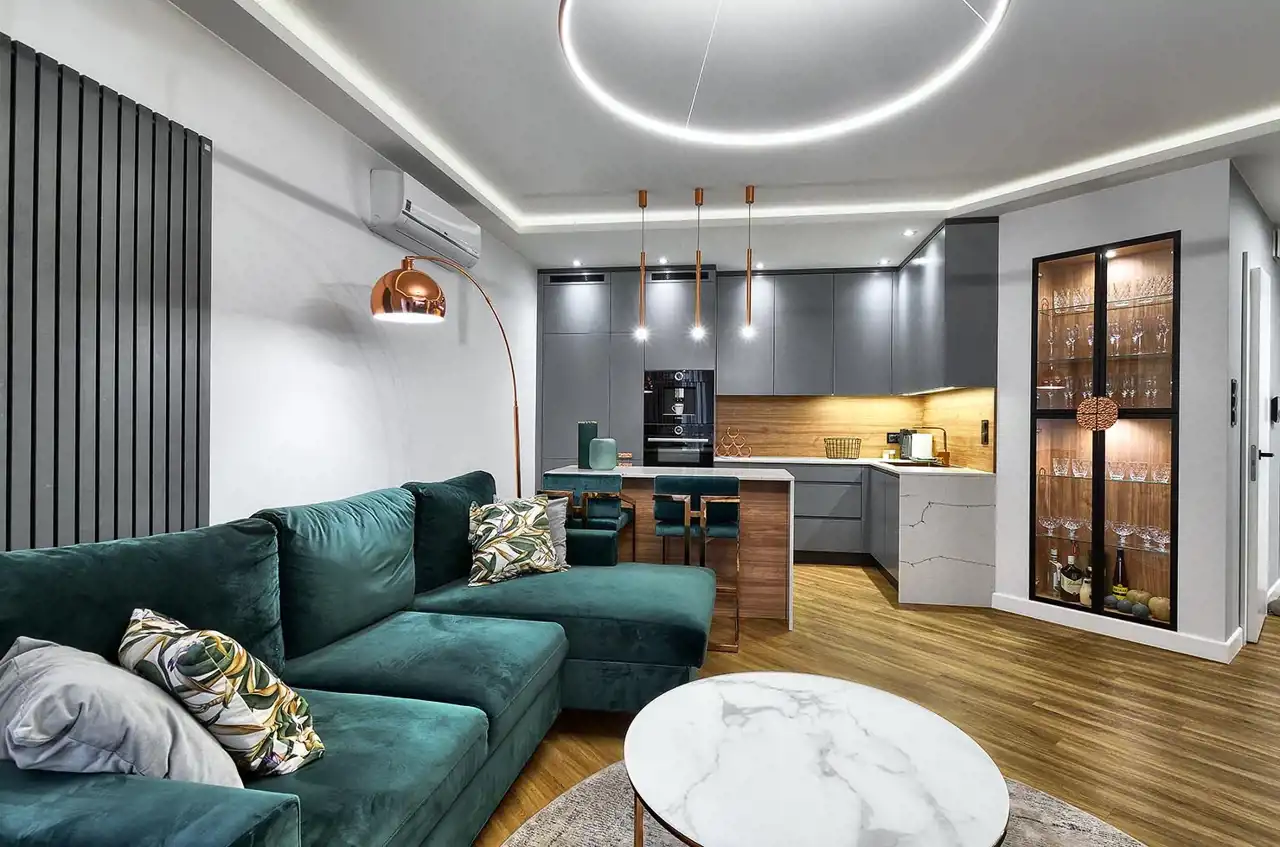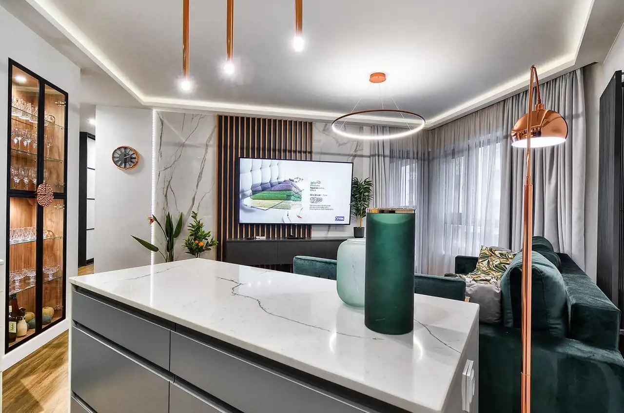 The property has never been lived in, finished to a high standard, and equipped with essential household appliances, RTV equipment, and air conditioning.