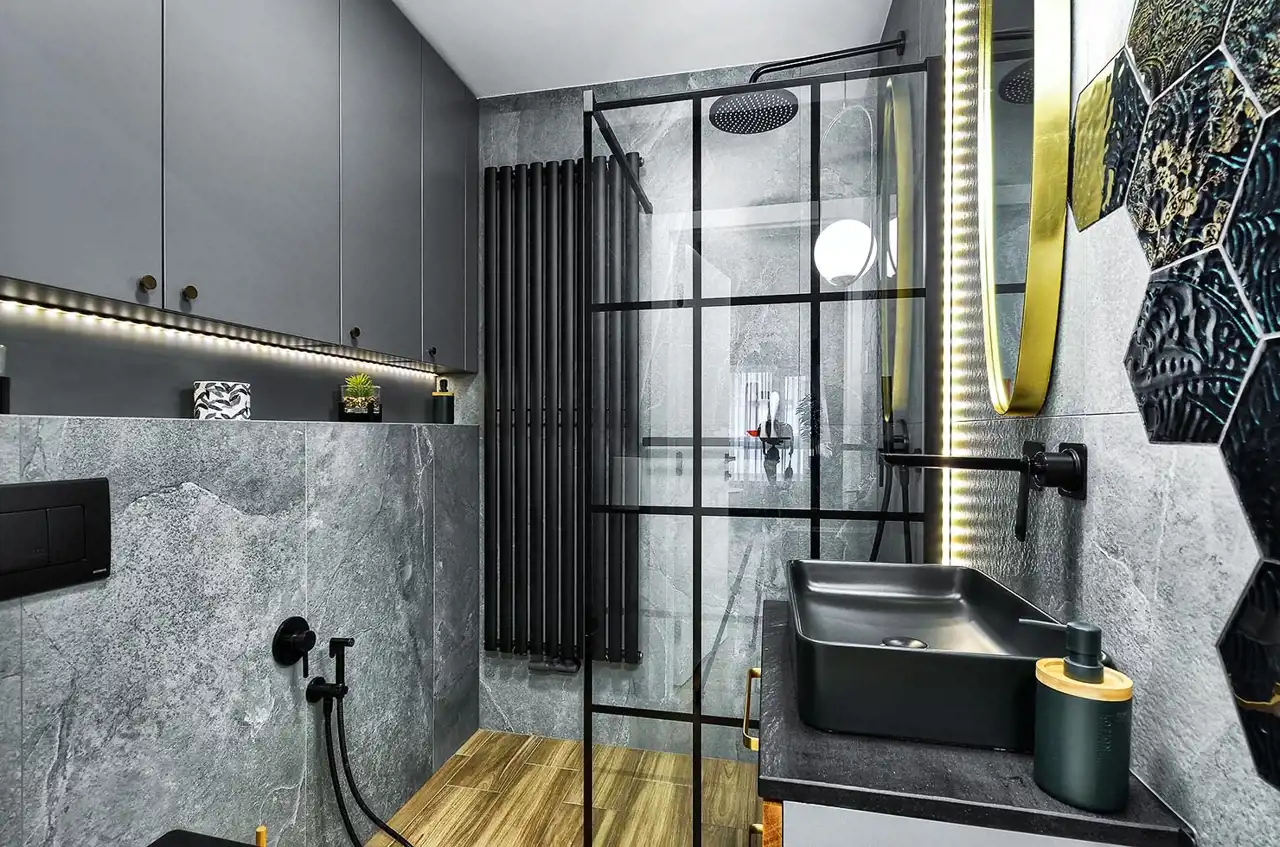 Heating and hot water are supplied from the municipal network. The bathroom features underfloor heating.