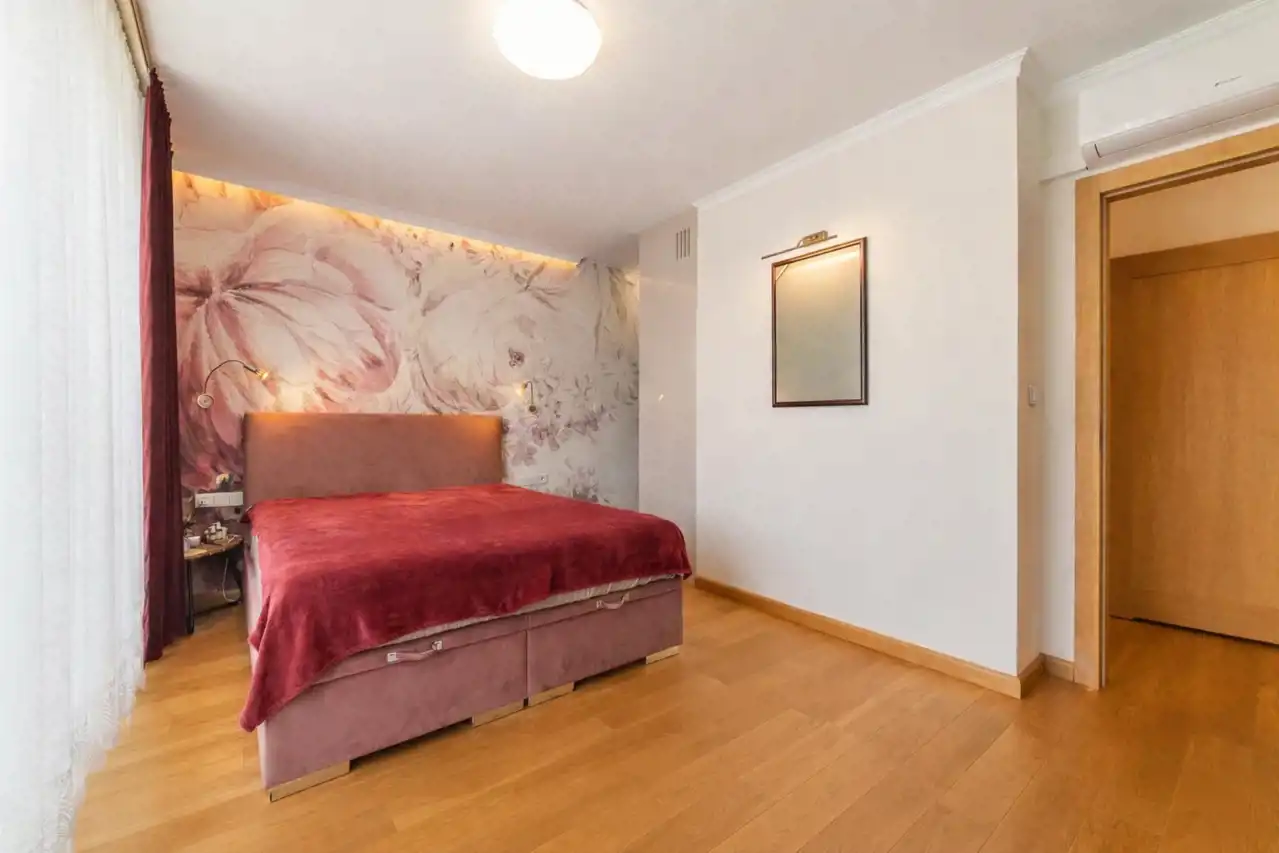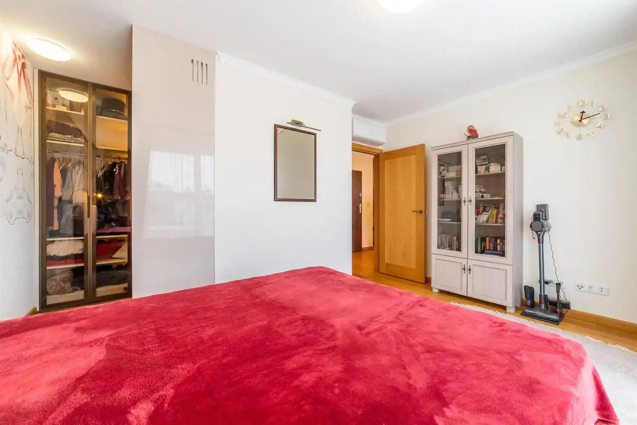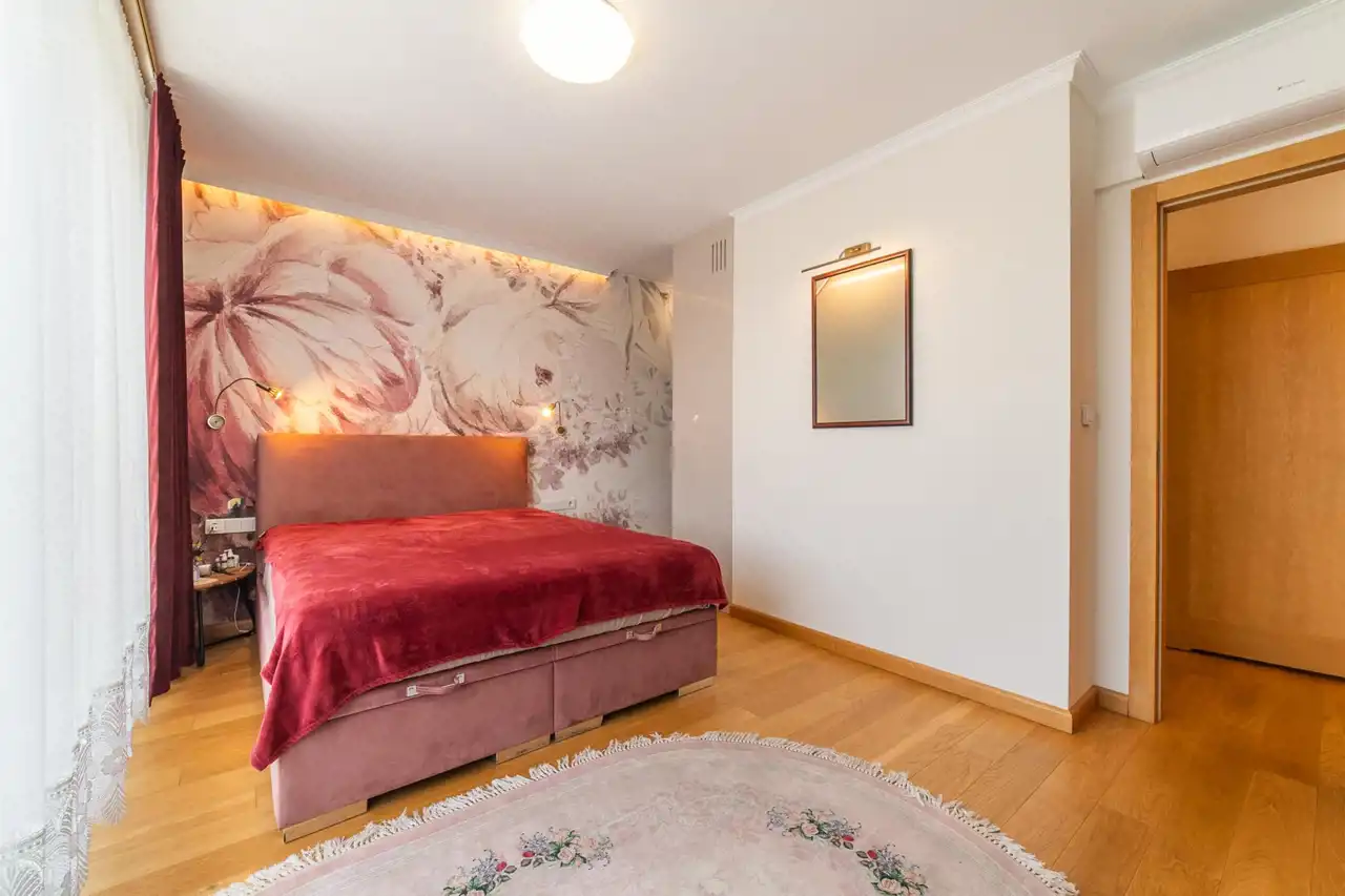 - Sypialnia z podwójnym łóżkiem i garderobą.