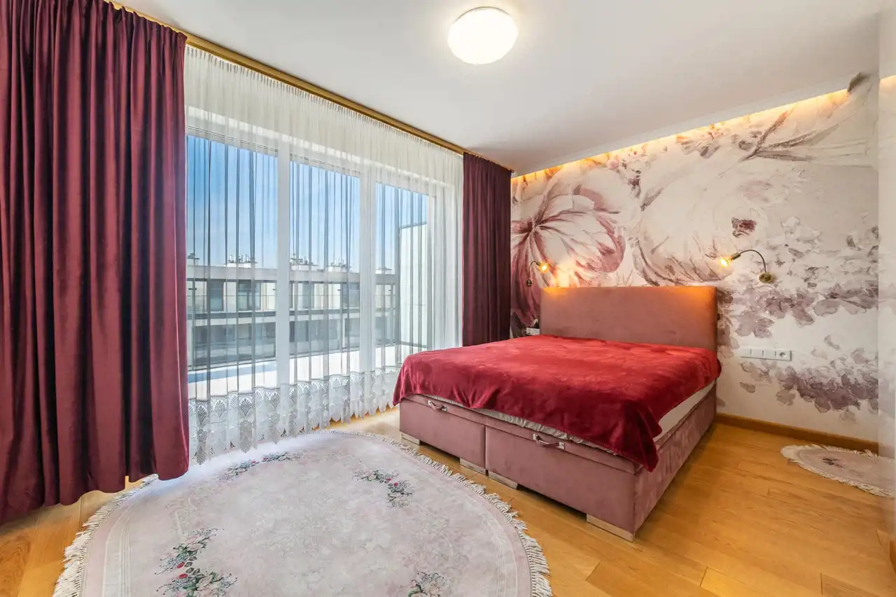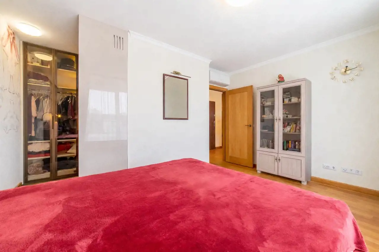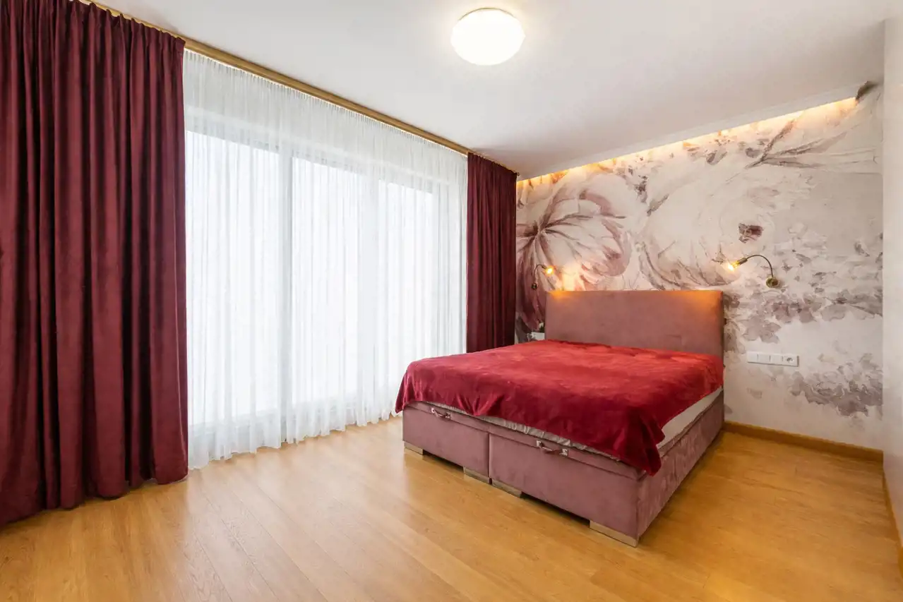 - Sypialnia z podwójnym łóżkiem i garderobą.