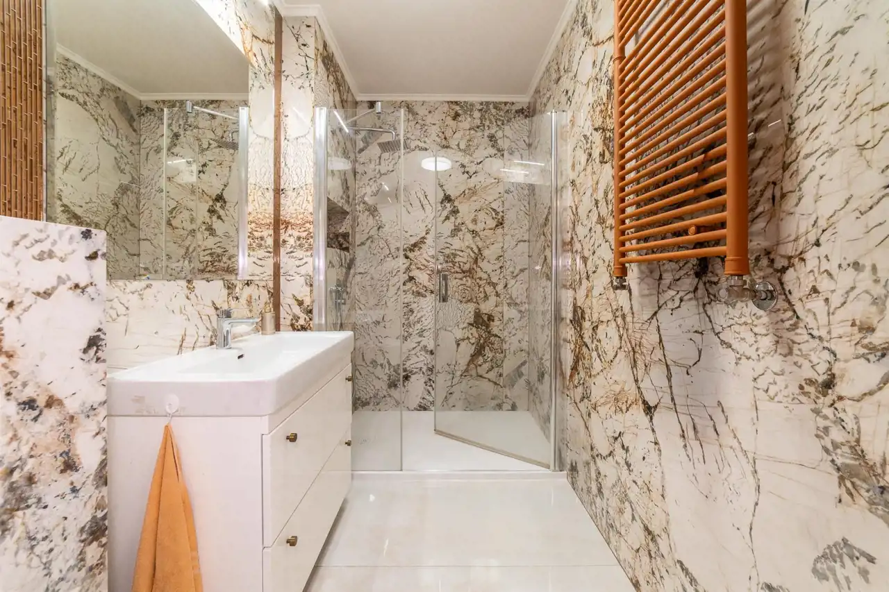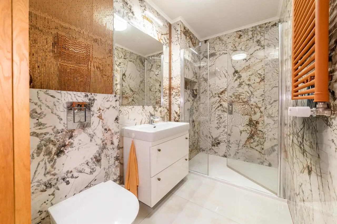 - Łazienka z WC wykończona hiszpańskim gresem.